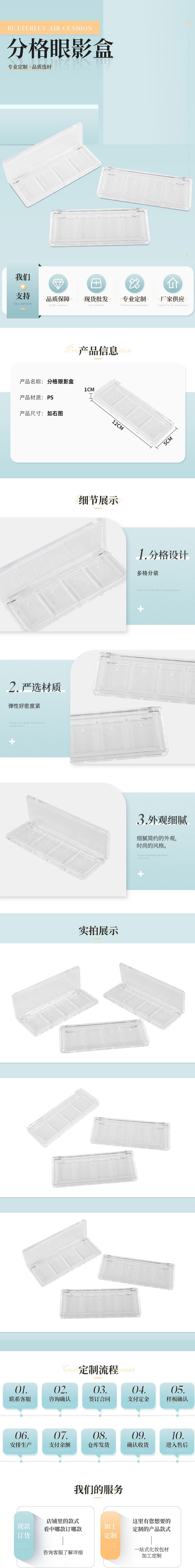 长方形眼影盒透明包装盒化妆品通用四格翻盖便携眼影盒