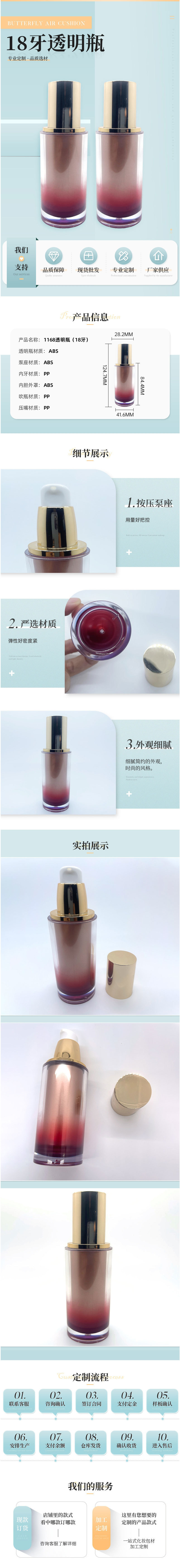 18牙透明瓶水乳液彩妆包材分装瓶精华粉底瓶