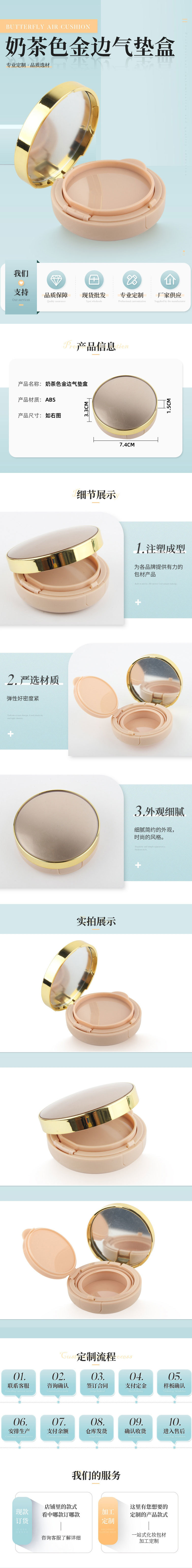金边翻盖气垫盒彩妆包材粉底液遮瑕BB霜空盒子化妆品分装盒