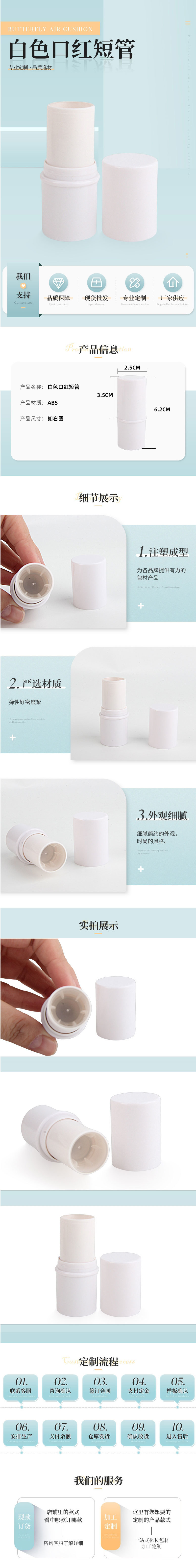 圆形白色口红短管壳子 固体润唇膏可diy分装塑料口红空管