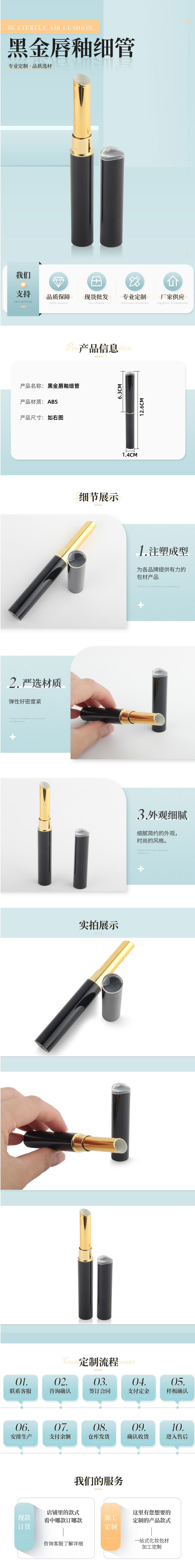 黑金细跟长管唇釉空管包材唇膏口红斜口旋转包装空管