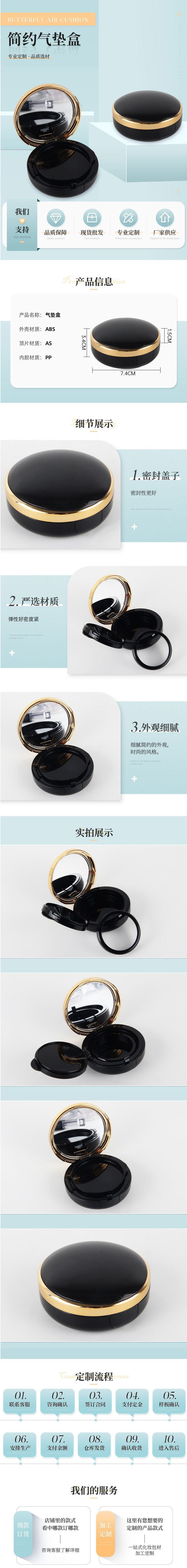 彩妆包材气垫盒子空盒黑金色海绵气垫BB霜
