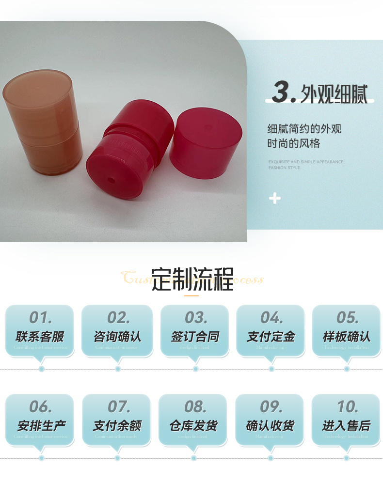 为国内外客户代加工生产各类化妆品包装,品类齐全,品种多样。我们一直致力于产品设计及研发、敏锐的市场嗅觉及经过淬炼的研发设计团队,积极探索,根据不同客户需求,再结合国际潮流、化妆品行业发展趋势、等大量调研数据支撑,产品的外观、工艺、结构和质量都在不断进步。我们秉着严格的生产产品标准和精益求精的质量管理,在不断提高产品生产效率的同时,对产品质量进行严格把关,让客户收到满意的产品。