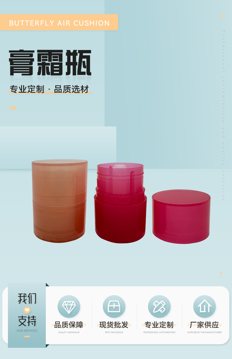 化妆品包装容器、化妆品包材、气垫盒、散粉盒、塑料瓶、PET塑料瓶、膏霜瓶、喷雾瓶、化妆品软管