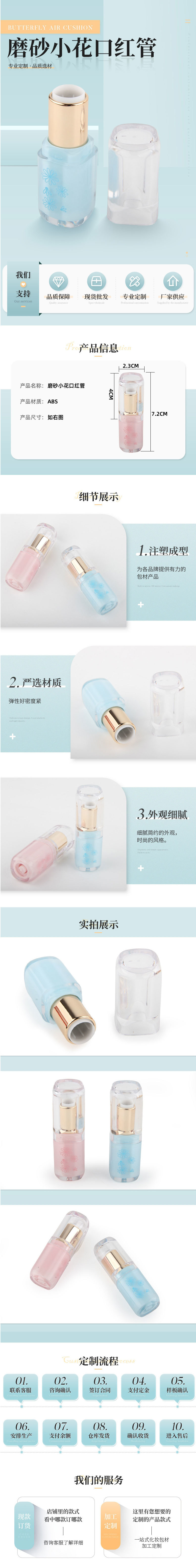 四方短管磨砂小花透明盖口红空管 固体唇膏口红管化妆品