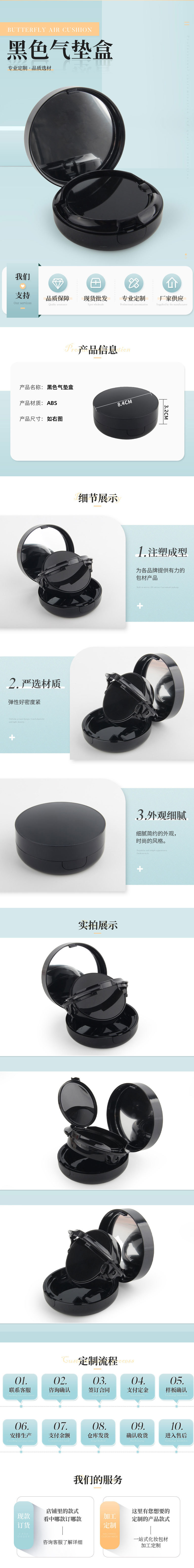 黑色翻盖气垫BB霜空盒 粉底液CC霜分装气垫空盒子化妆品外壳包材