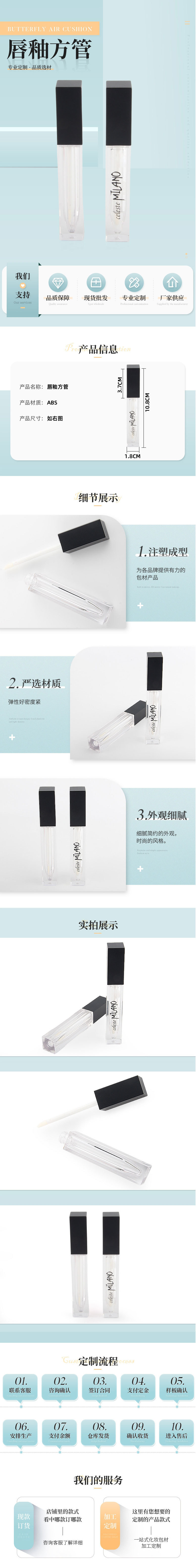 黑色盖透明瓶四方唇釉管包材 液体遮瑕膏唇釉口红管化妆品灌装管