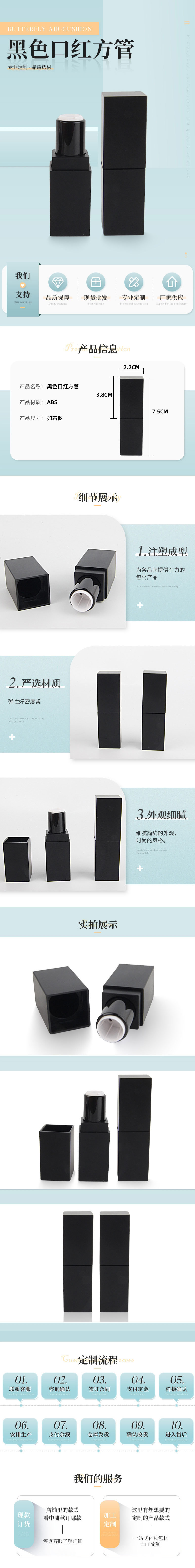 简约款四角方形黑色口红空管 润唇膏管口红管塑料空管