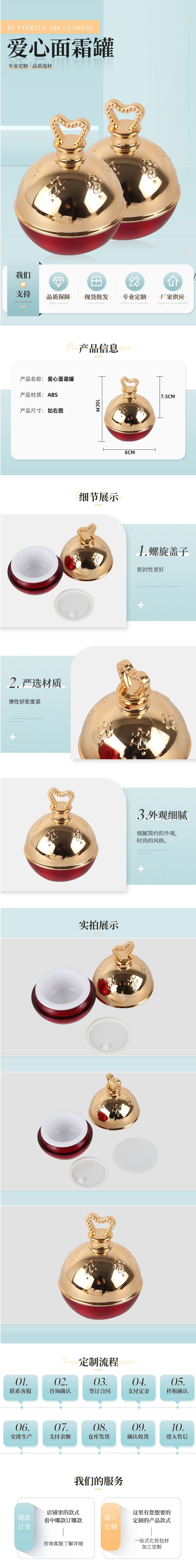 为国内外客户代加工生产各类化妆品包装,品类齐全,品种多样。我们一直致力于产品设计及研发、敏锐的市场嗅觉及经过淬炼的研发设计团队,积极探索,根据不同客户需求,再结合国际潮流、化妆品行业发展趋势、等大量调研数据支撑,产品的外观、工艺、结构和质量都在不断进步。我们秉着严格的生产产品标准和精益求精的质量管理,在不断提高产品生产效率的同时,对产品质量进行严格把关,让客户收到满意的产品。