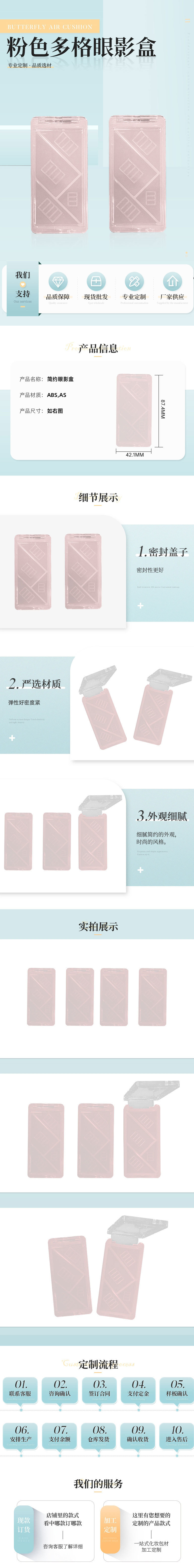 简约ins风眼影盒包材粉色多格眼影翻盖包装盒